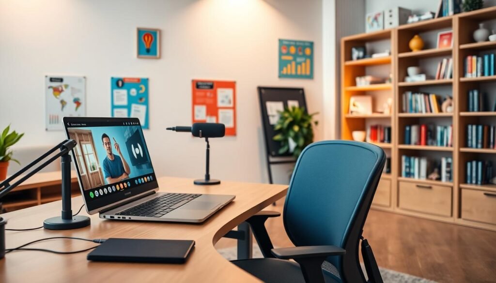 To make an online learning space great, setting up a virtual classroom is key. This means classroom setup, like picking the right platform and arranging your gear. It should also look good and keep students interested and motivated.